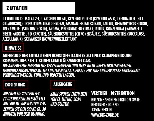 Die Inhaltsstoffe Glycerin & Citrullin besitzen eine feuchtigkeitsbindende Eigenschaft, die eine Verklumpung des Pulvers herbeiführen kann Wichtig: Die Verklumpung ist NICHT SCHÄDLICH. Qualität, Haltbarkeit und Wirkung werden nicht beeinträchtigt.